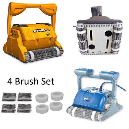 A brand new set of 4 Genuine Dolphin Pool Cleaner Combination Brush Set. These are part grey PVC, with a band of white foam for added grip. Ideally suited to pools which are NOT tiled.